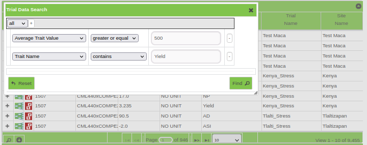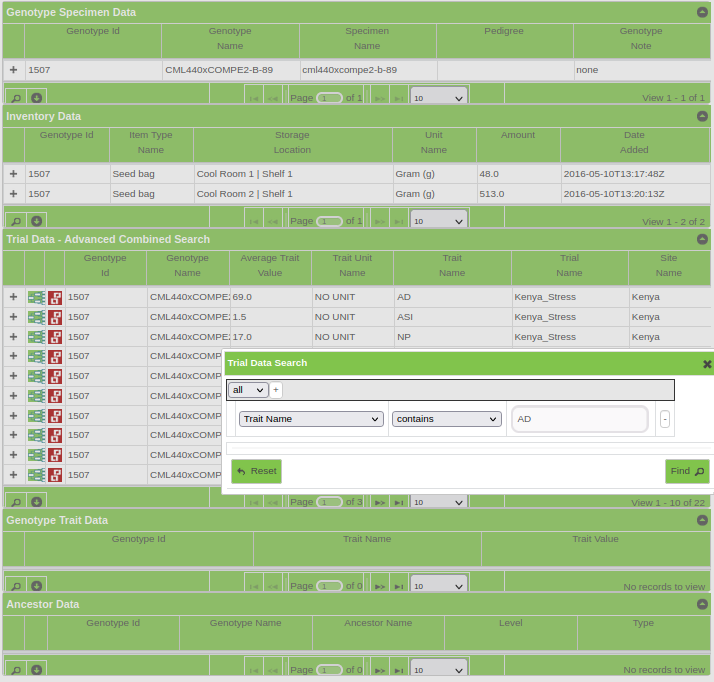 The KDManage Search Tool enables users to search for various entries across the different data sets which are: